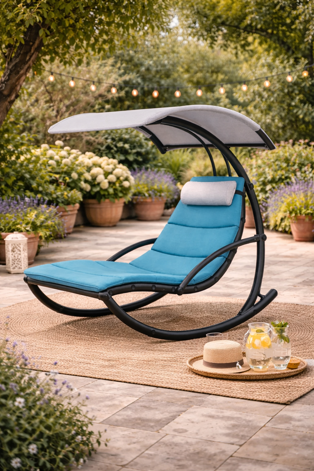 Rattan Outdoor Swing Lounger with Canopy-Teal